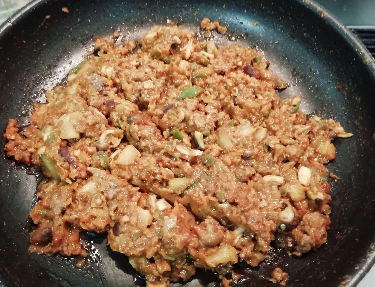別鍋で挽き肉も炒めて